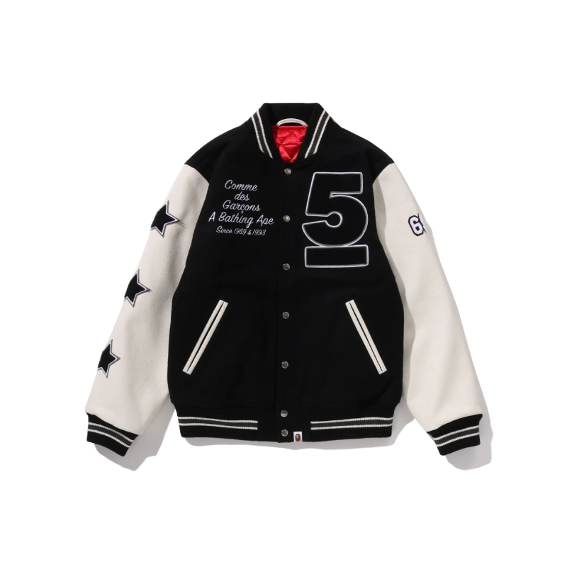 Recreation – A BATHING APE x COMME des GARCONS OSAKA Black & WhiteVarsity Jacket