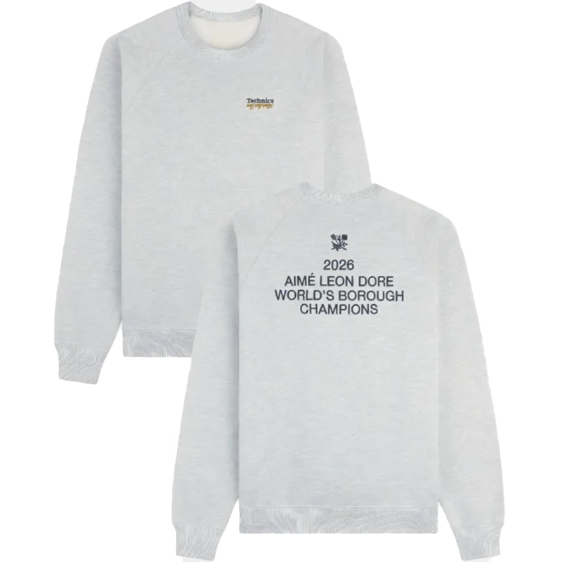 Unisex Aimé Leon Dore x Technics World Champions Crewneck Fleece Pullover Black & Grey Sweatshirt