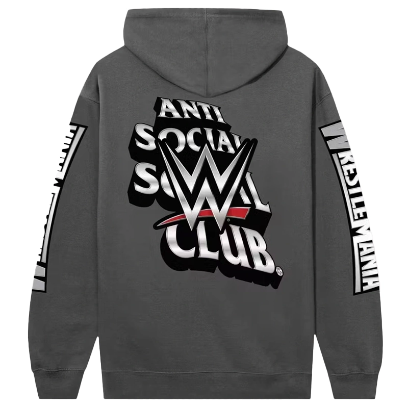 Recreated  WWE Wrestlemania x Anti Social Social Club Charcoal Pullover Fleece Hoodie