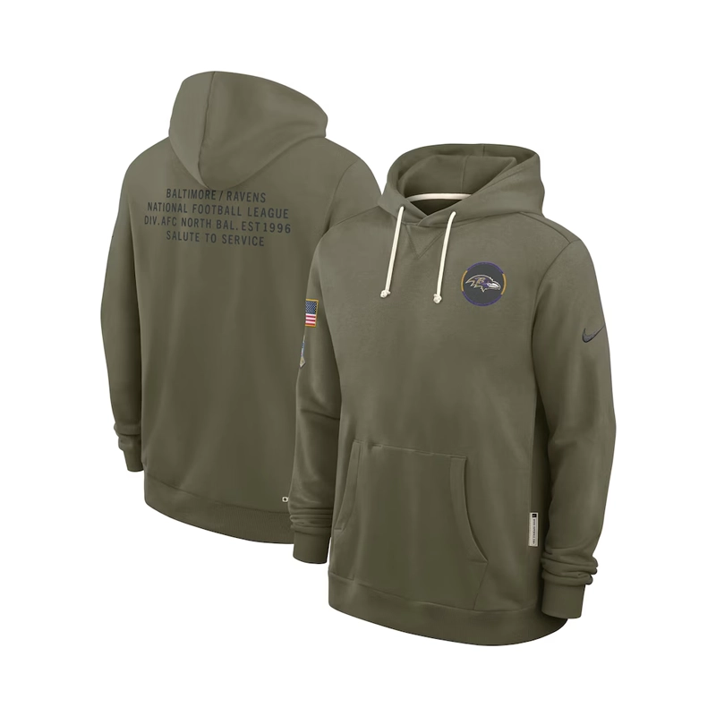 Men’s Baltimore Ravens Nike Olive 2025 Salute to Service Sideline Standard Issue Dri-FIT Hoodie