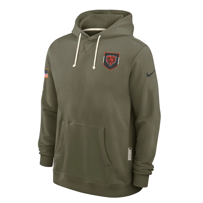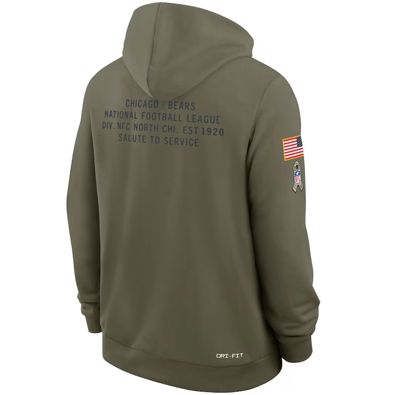 Men’s Chicago Bears Nike Olive 2025 Salute to Service Sideline Standard Issue Dri-FIT Hoodie