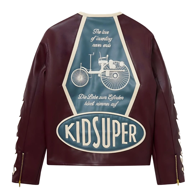 Hungarian Footballer Dominik Szoboszlai KidSuper X Mercedes Benz Racer Leather Jacket – Burgundy
