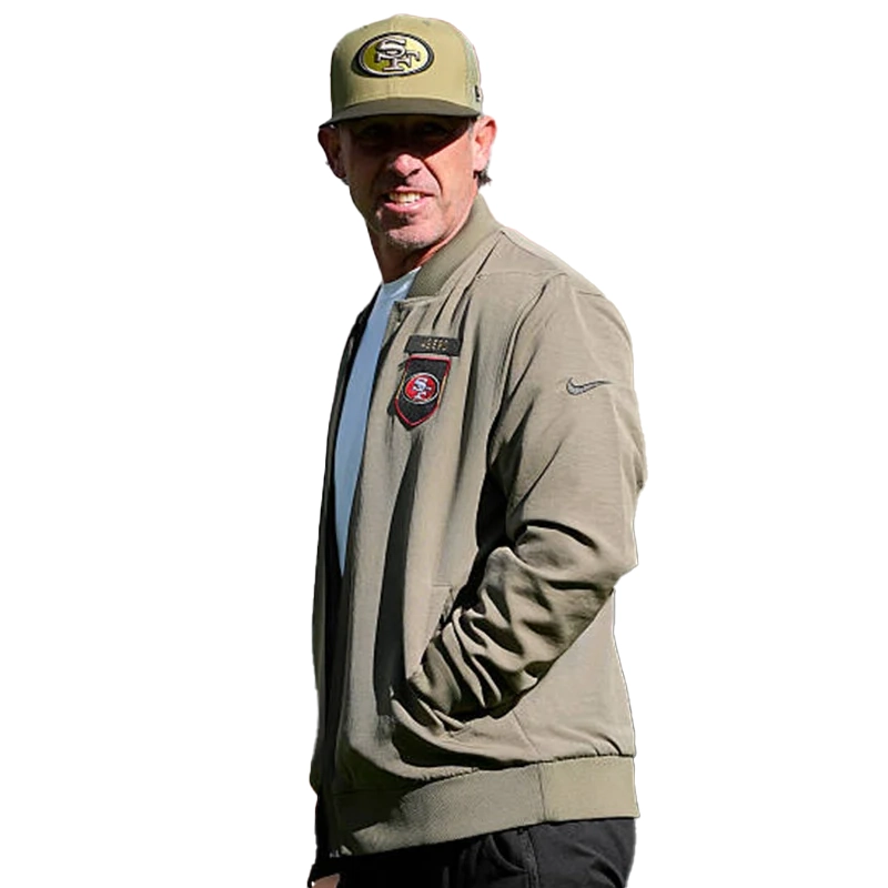 Kyle Shanahan San Francisco 49ers Salute to Service 2025 Olive Green Cotton Bomber Jacket