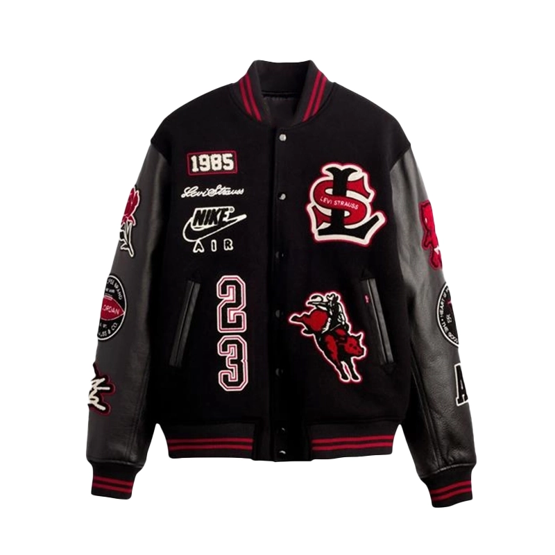 Recreation – Levi’s x Jordan 2026 Black Varsity Jacket Wool With Leather Sleeves