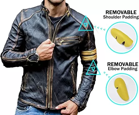 • ✔ Men’s Vintage Motorcycle Patches The removable padded armour in the elbows and shoulders of the Removable Hood Jacket
