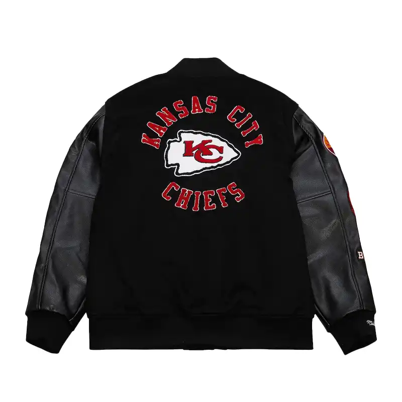 Men’s Kansas City Chiefs Mitchell & Ness Black Blackout Collection Vintage Logo Full-Snap Varsity Jacket 2025