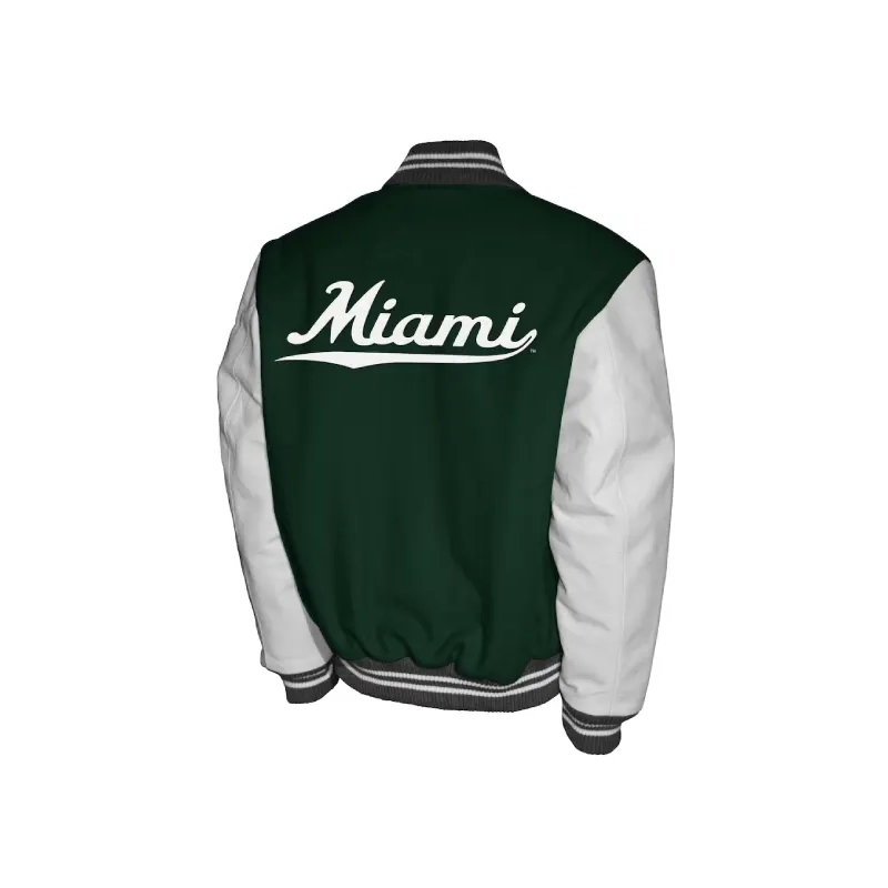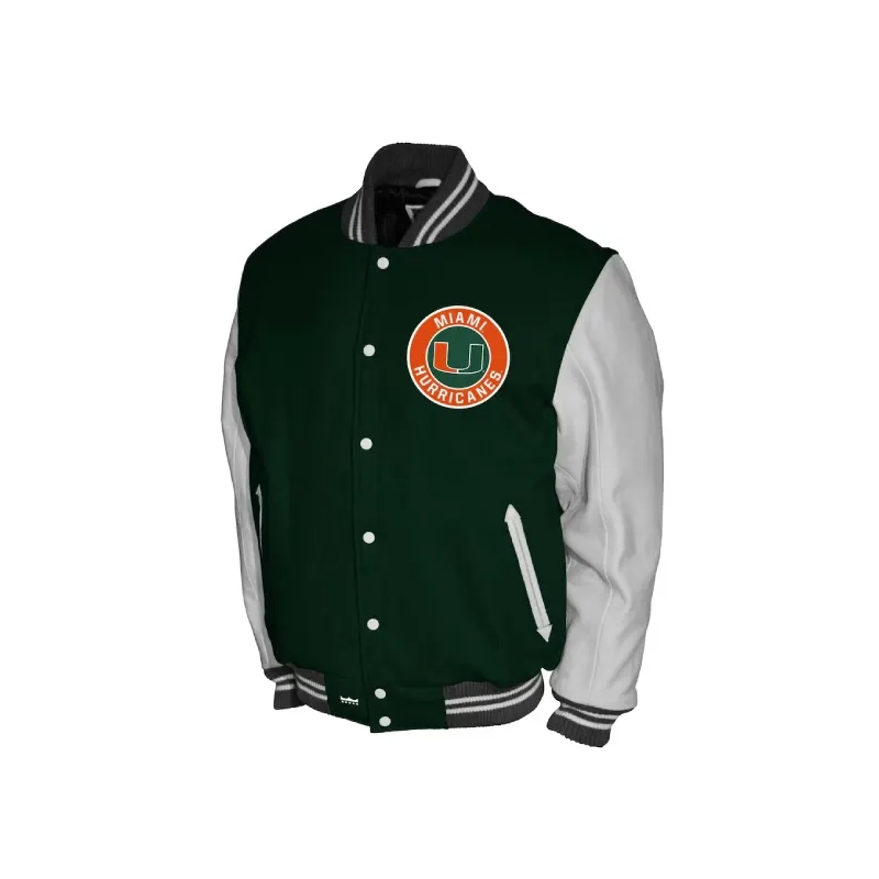 Miami Hurricanes Letterman Green And White Jacket