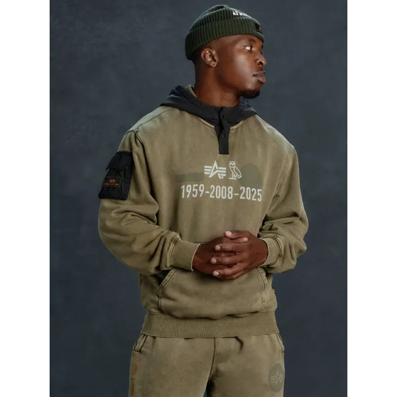 Recreated – OVO Alpha Industries Garment Dyed Olive Green Hoodie