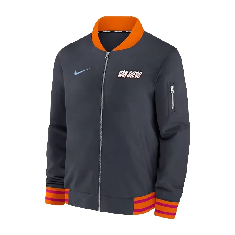 RECREATED – Men’s San Diego Padres Nike Black & Orange 2026 City Connect Authentic Collection Relaxed Full-Zip Bomber Jacket