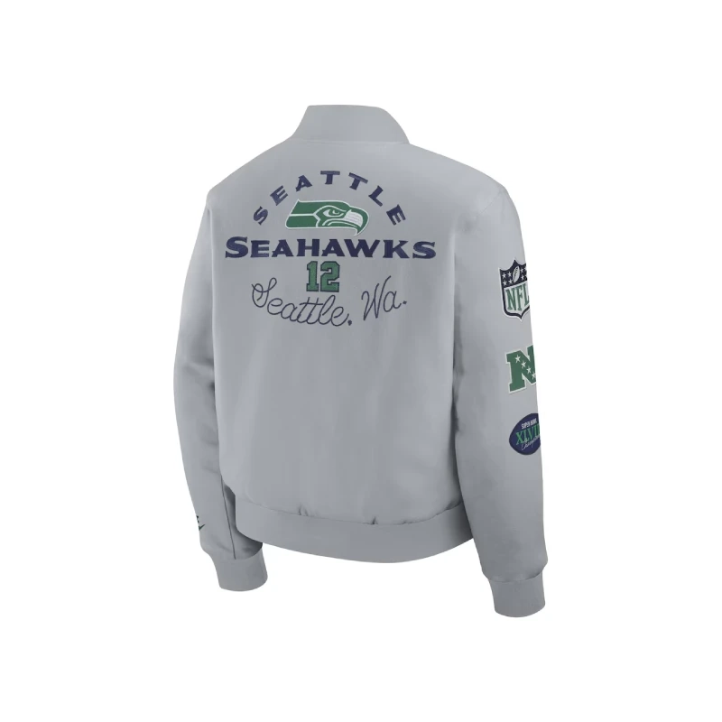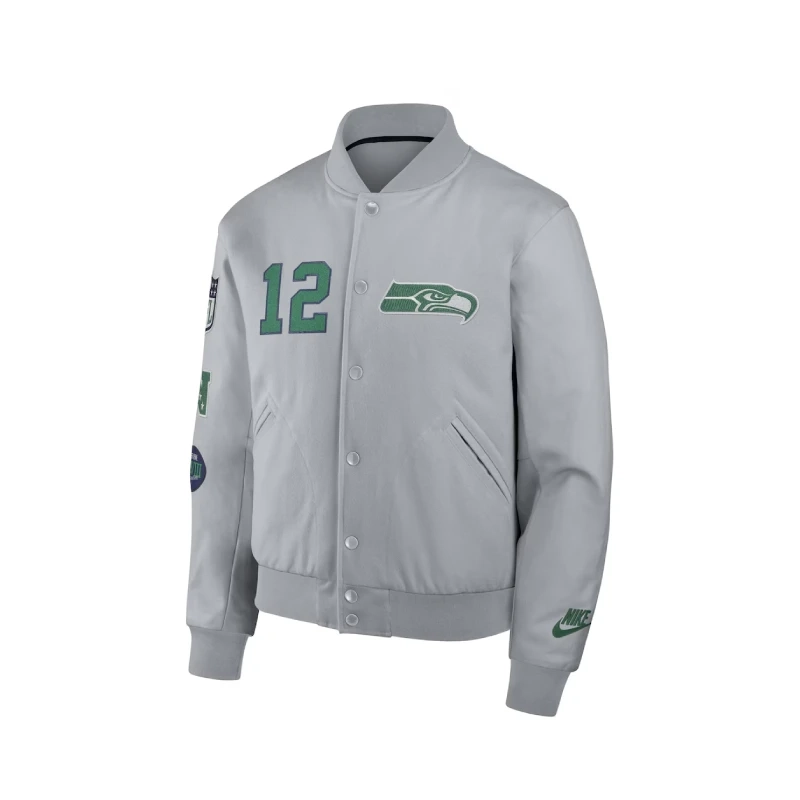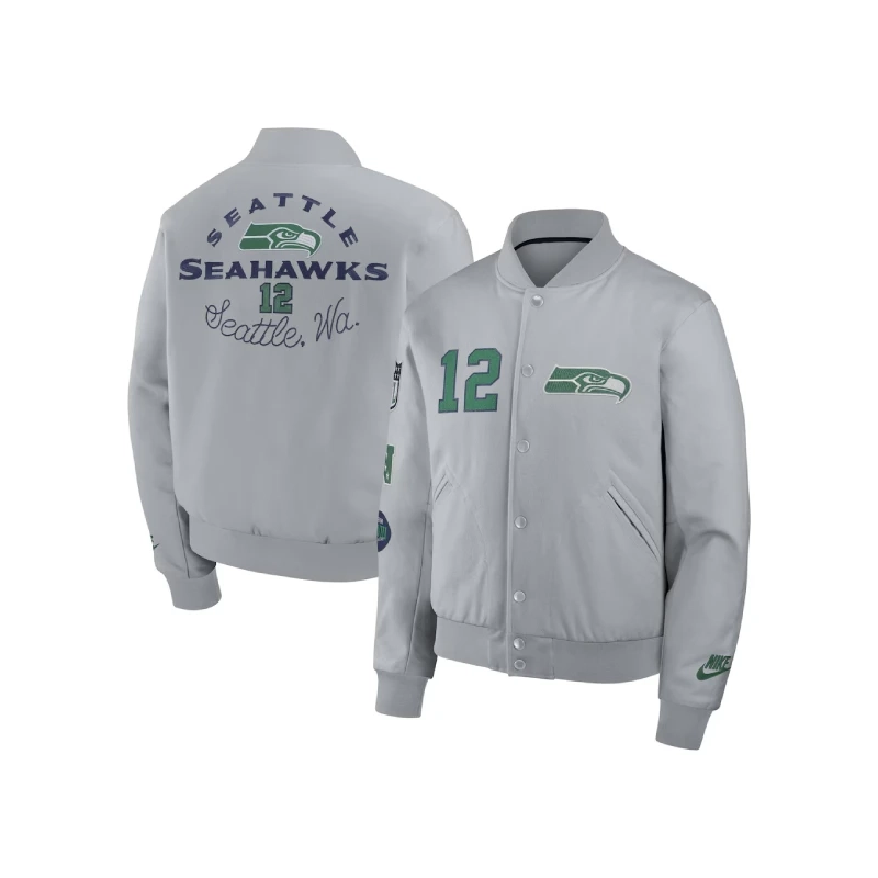 Men’s Seattle Seahawks Nike Gray 2025 Rivalries Collection Full-Snap Varsity Jacket