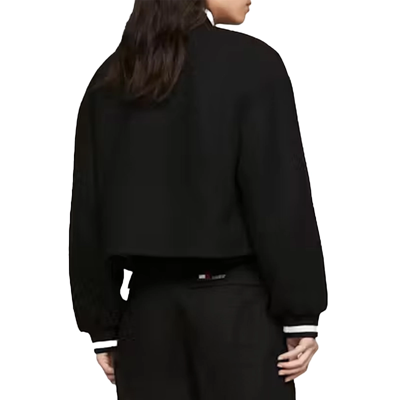 Recreated Tommy Hilfiger Padded Varsity Cropped Black Bomber Jacket