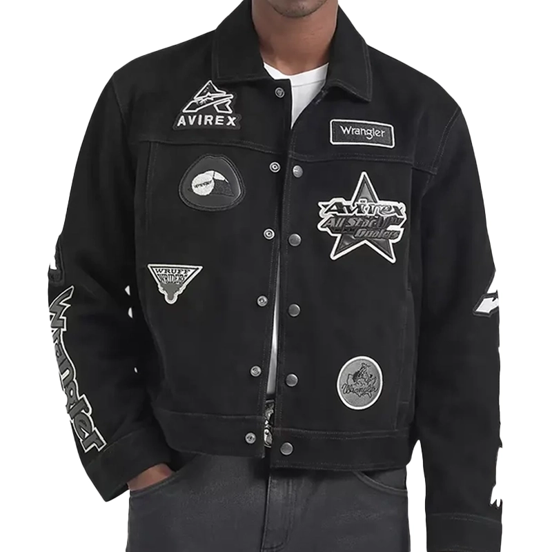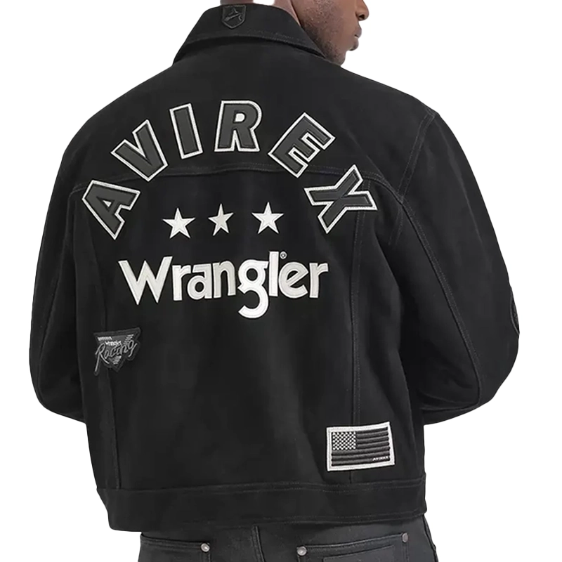 Wrangler x Avirex Suede Leather Black Trucker Jacket